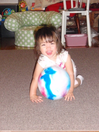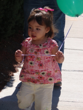Aurora's first experience with a balloon that gets away. She was a bit upset when we could not catch it in time.