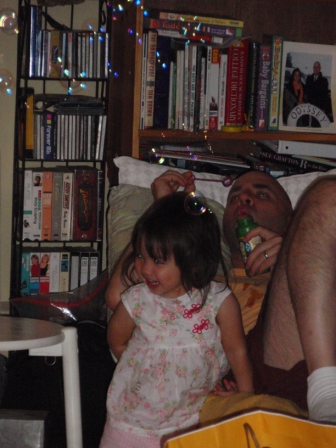 September 5, 2009: The day after Jon's surgery, Aurora and Baba sleep in. It appears that Aurora is a bed hog, just like her Mama.