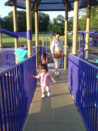 September 21, 2009: After work, we took Aurora to a playground in Watertown. Here she is demonstrating how