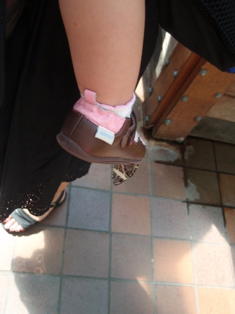 got a bit freaked out when a butterfly decided to rest on her shoe.