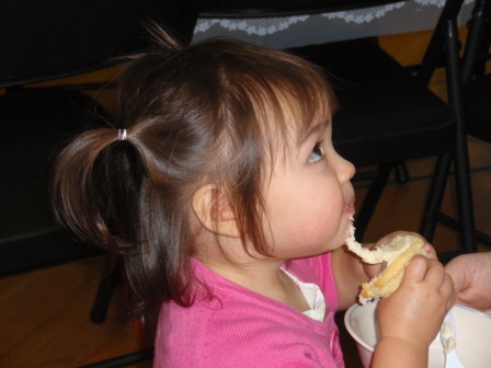 From the MOS, we rushed to a baby shower for Ariana Wood. Aurora had her first cupcake, then tried to steal Mama's.