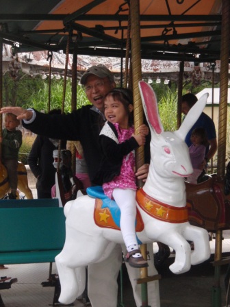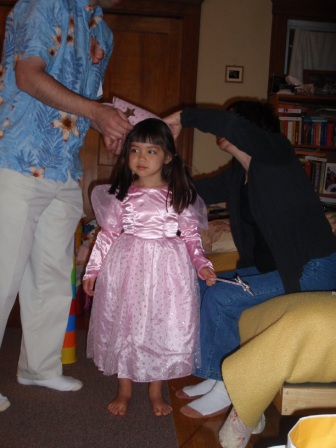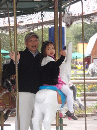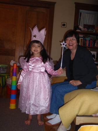 September 16, 2011: Wai Po and Wai Gong arrive for a weekend visit. Here Aurora tries on her