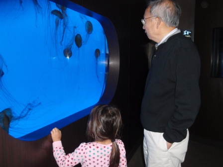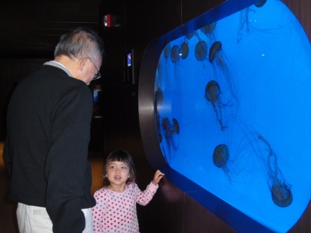 Showing Wai Gong the jellyfish exhibit. Ever since she was a toddler, Aurora has always liked