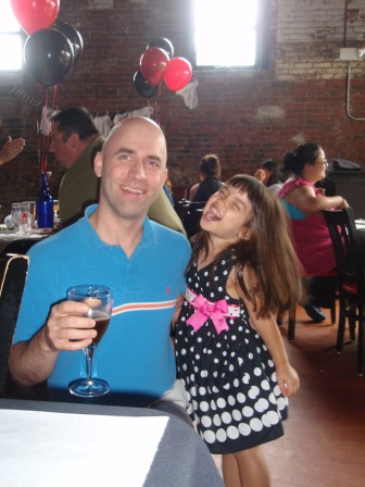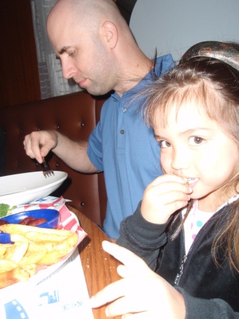 Jon and Aurora enjoy an early birthday dinner at Legal Seafood.