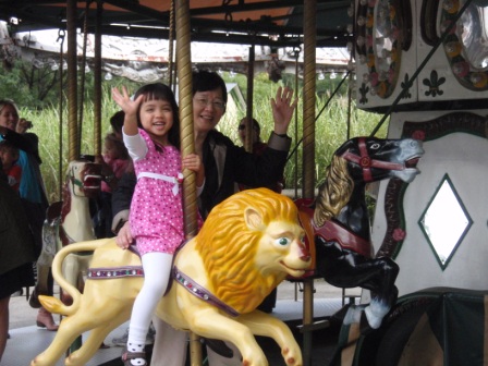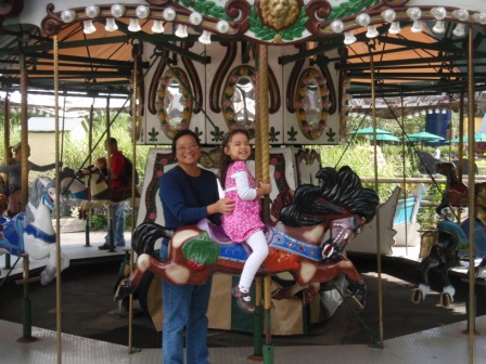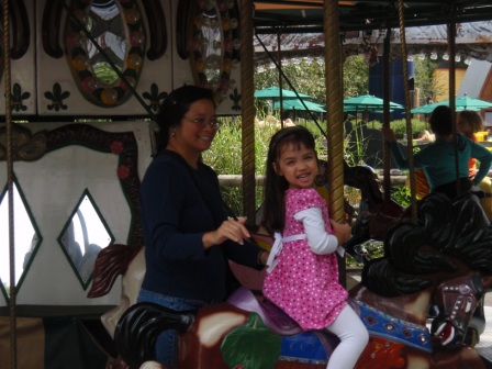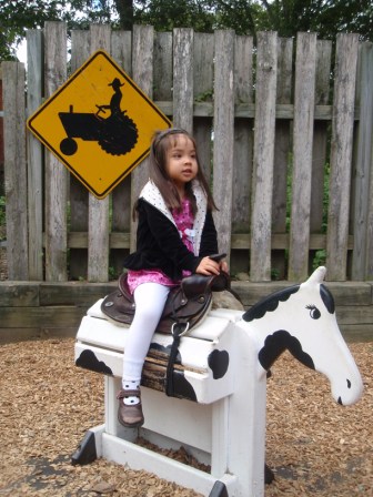 After a quick pizza lunch, the girls go on pony rides. Aurora's pony looked more like a