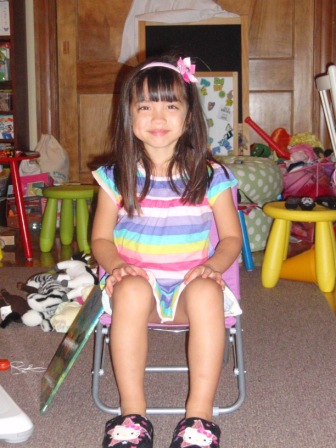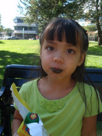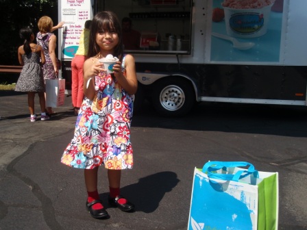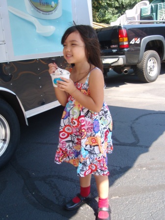 that weekend, so with the $60 shoes, she got a free ice cream. Here she is modeling her new shoes.
