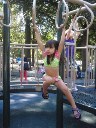 the playground. Aurora got to show Jon some of the skills she learned at My Gym.