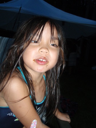 Back at home, there was pletny of time for goofing off in the backyard before Aurora and Jon set up the tent for