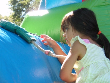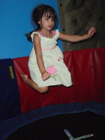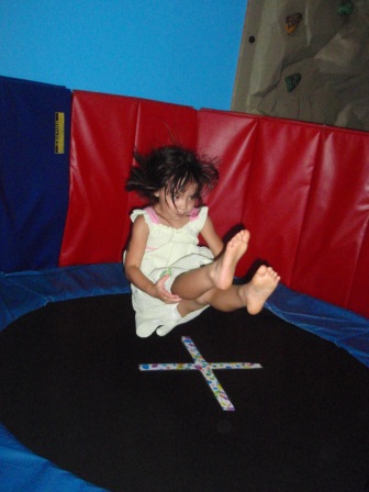 Now she is ready for the obstacle course! She did it multiple times, racing with other kids,