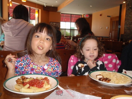 September 22, 2012: After ballet, we meet up with Greer for lunch at Bertucci's.