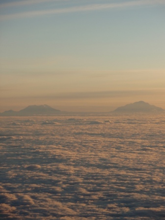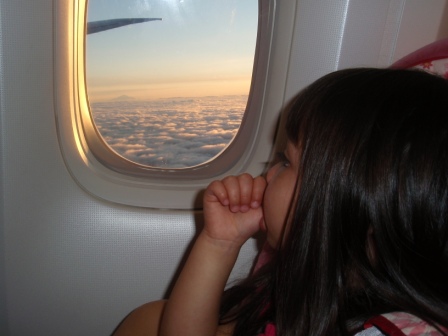 checking out the mountains sticking up over the clouds after our short stopover in Anchorage. Despite it