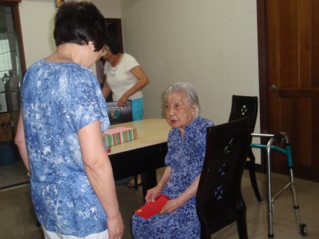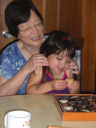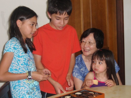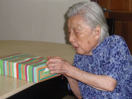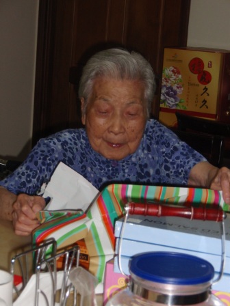 Nai Nai opens a birthday gift...and the kids wisely come to find out what it is. Mmmm!
