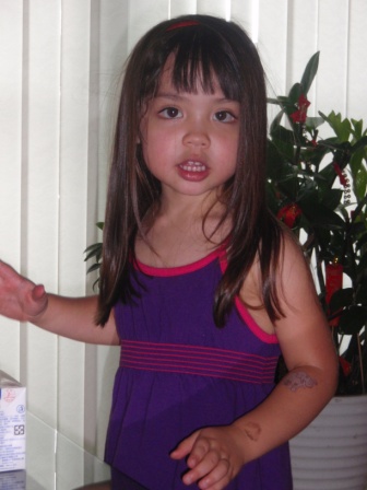 July 7, 2011: Aurora is up early and has a banana before breakfast. We then head out to an area