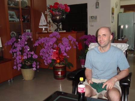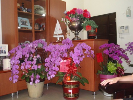 Throughout the day, huge arrangements of orchids keep arriving for Nai Nai's birthday. Other