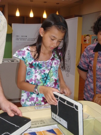 Learning how ancient Chinese bound their books. Elena is a natural at it!