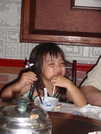 We took a cab back to the hotel to meet everyone for lunch at a small restaurant nearby. Aurora enjoys her noodles.