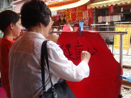 white is for success in school, pink is for friendship, etc. Kathy and Jon choose red, and decorated their lantern with
