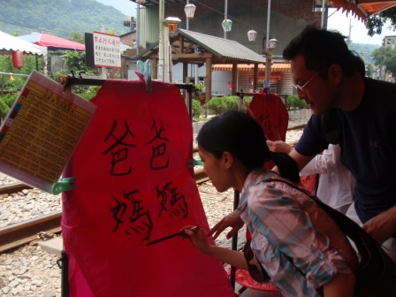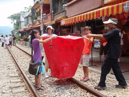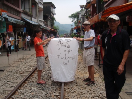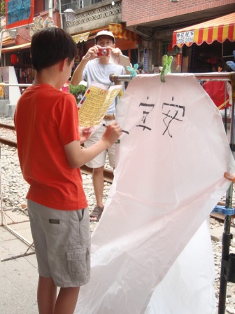 Back onto the train and we return to Shifen, where we pick out, decorate, and release sky lanterns. Different