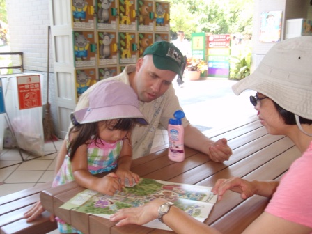 After breakfast, the remaining group heads off to the Taipei Zoo. Aurora studies the map to point out