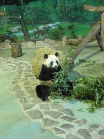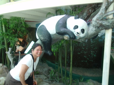 The Panda House is nice and cool! Kathy can stay here all day, and not just to watch the pandas! We were