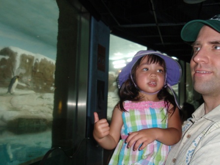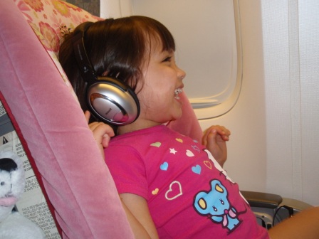 On the plane, everyone got their own video screen. Aurora enjoyed Pingu so much she watched it 2 times in a row.
