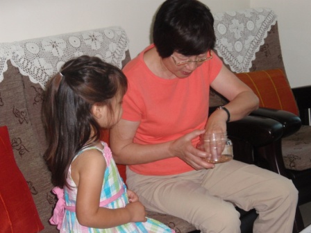 she really really likes peanuts. Here she is getting Wai Po to get the last ones out of the jar
