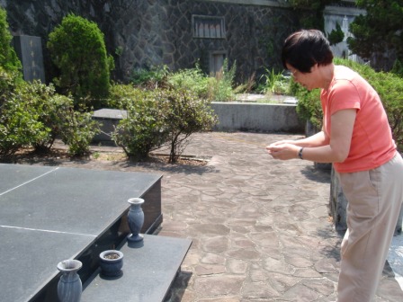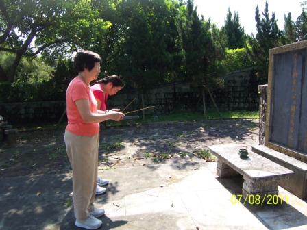 July 9, 2011: That morning, Kathy and her parents go "baibai" at the tombs of her ancestors. Jon and Aurora stay
