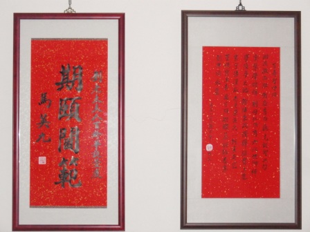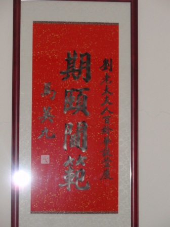 One final family dinner at Nai Nai's house. The scroll on the left is a present to Nai Nai from President Ma.