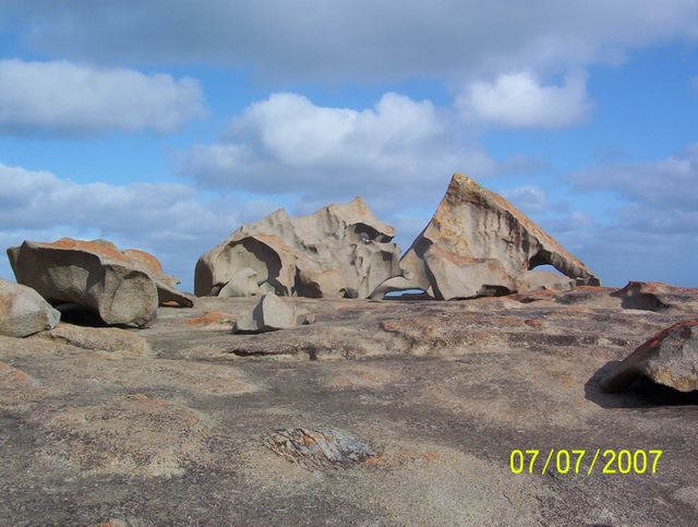 Australia, Part 1 -- These granite boulders, sculpted by wind and the ocean spray, are on a steep cliff overlooking the ocean.