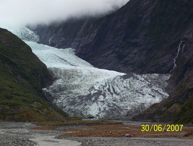 New Zealand -- The terminal face of the Franz Josef Glacier. Note the dark arch at the bottom - you'll see it again later.