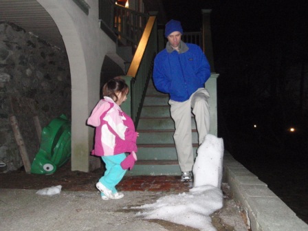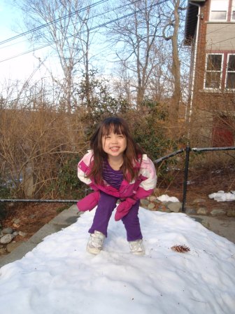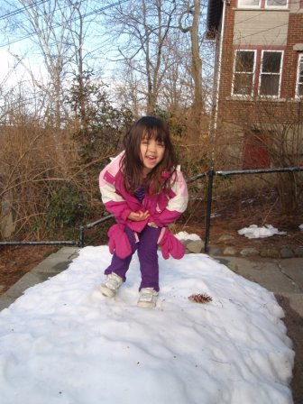 Aurora enjoys the last of the giant snow pile by the front porch.