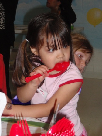 Aurora enjoys the frosting, and leaves the cupcake for Mama and Baba to eat.