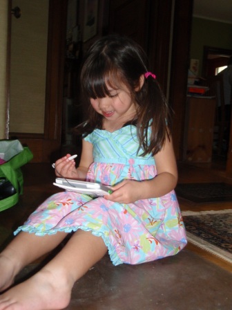 April 10, 2011: Aurora likes her Kai Lan playset, but often needs help putting it together