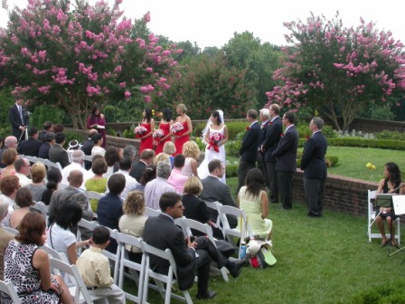 The wedding took place at Oxon Hill Manor. It was a beautiful ceremony.