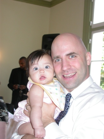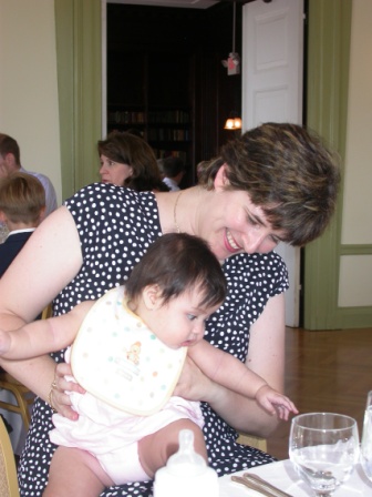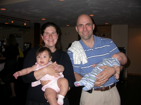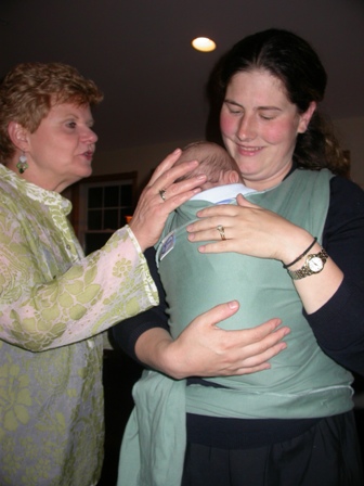 Corin and Jon do the baby exchange. At 2 months and 10 pounds, Oliver sure was tiny compared to our hefty baby!