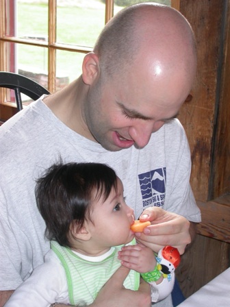 Trying out the high chair for the first time (thanks Andy and Rebecca!)