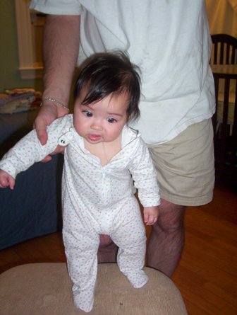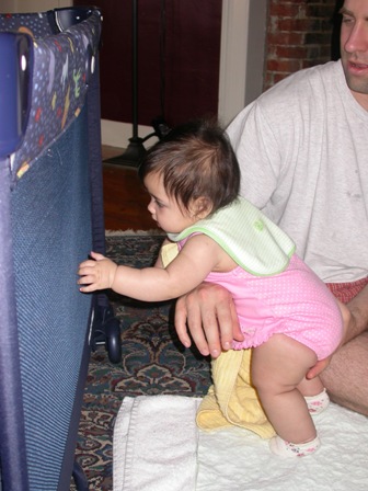 but didn't have enough control over them to push up onto her knees. She continued to use the sides of her crib as