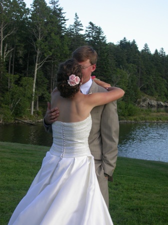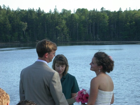 setting for their nuptuals, on the lawn over looking the bay on Deer Isle (Maine). Both brides were gorgeous and both grooms