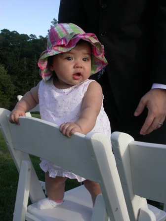 August 1: At BWI airport, Aurora demonstrates that her balance is getting better.