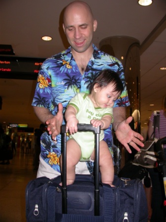 After a mini-meltdown on the plane (we sat on the runway for 2 hours), Aurora finally passes out. Jon, Kathy, and everyone else