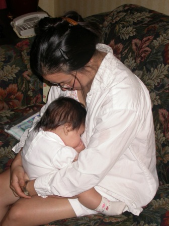 A mid-morning cuddle after Aurora has her mid-morning snack.