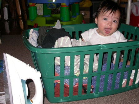 August 5: Aurora is now used to helping Mama fold the laundry. Maybe she can learn to iron next!