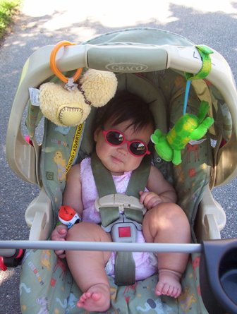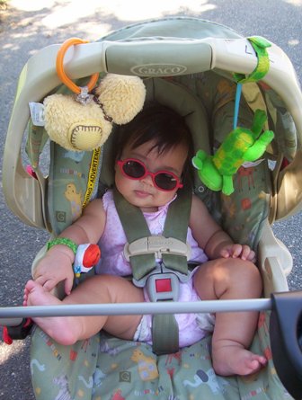 August 12: Heading to day care for the first time. Looks like Aurora is trying to break out of her car seat!