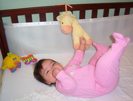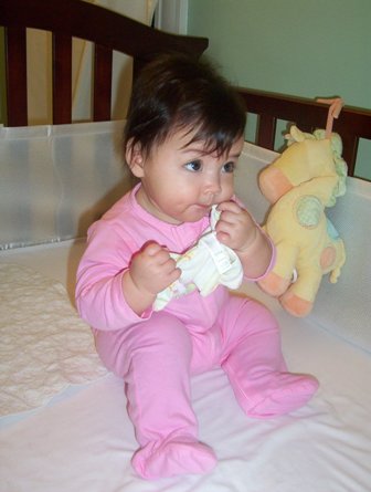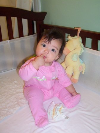 in every position anywhere in her crib. Unfortunately, she still has trouble distinguishing between things that are
