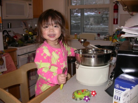 December 19, 2009: On most mornings, when we ask Aurora what she wants for breakfast, she tells us "oatmeal!"