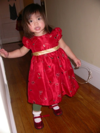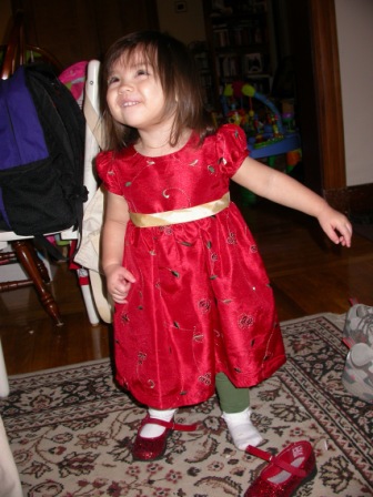 December 22, 2009: Aurora refuses to put on clothes that evening. We are lucky to have