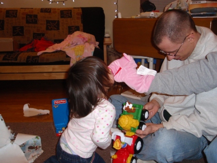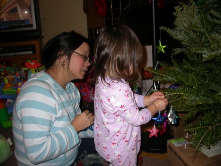 December 25,2009: We had put some ornaments on the tree earlier in the week, but hadn't fully decorated it yet.