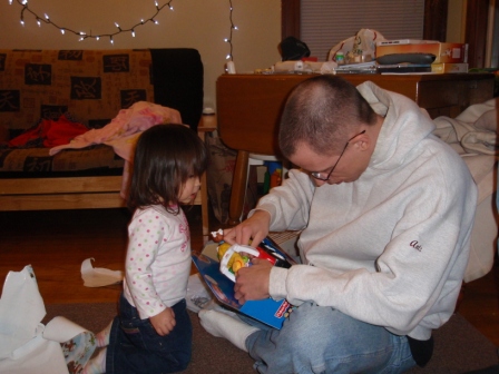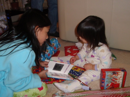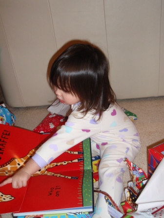 Here she is enjoying a new book. Aurora loves books, and has memorized several favorites.