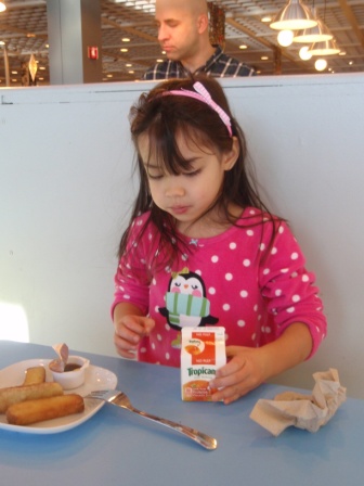 December 23, 2012: We spent the morning in IKEA. Aurora loves having breakfast there (while