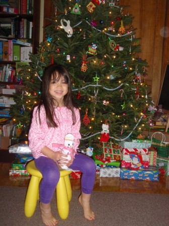 December 24, 2012: It's Christmas Eve! Greer and her parents joined us that evening. Once again, Aurora
